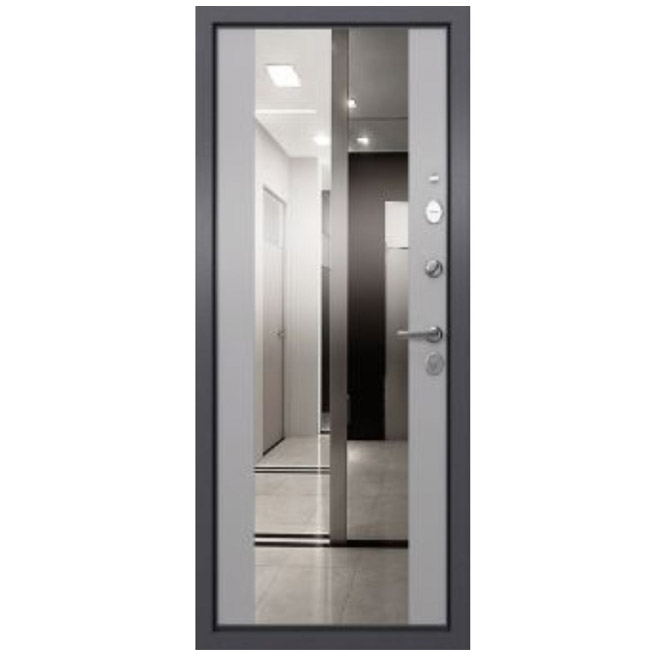 Дверь входная Tau LT MP 2 с зеркалом. В стоимость комплекта входят: дверное полотно, дверная коробка, наружный наличник, ручки, замки.